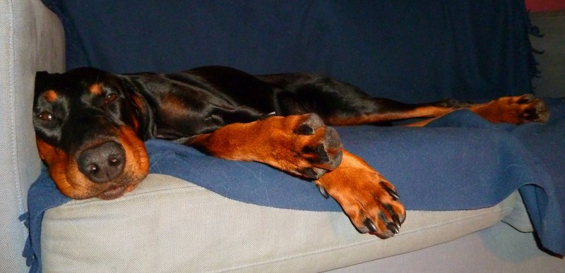 Rika je klidný a poctivý stopař, s obyklou dobrmaní zbrklostí na stopách jsem neměla sebemenší problém, má silný kořistnický pud a tak miluje obrany i když netrénuji tak často jak bych si představovala, dobrý figurant je nedostatkové zboží :-(.