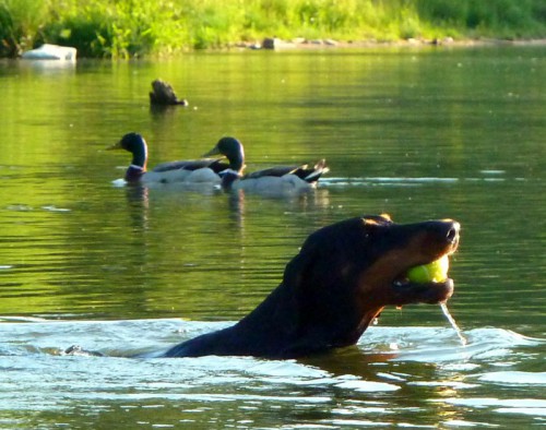 Často vyrážím se psy na kolo, 30 Km u kola je pro Riku brnkačka, chodím se psy běhat a v létě plaveme. Rika je můj první pes, který je ochoten podnikat se mnou plavecké výpravy napříč rybníkem či jezerem. Ostatní psi vždy plavali maximálně kousek a pak čekali na břehu. Je to výborný vodní doprovodný pes :-)